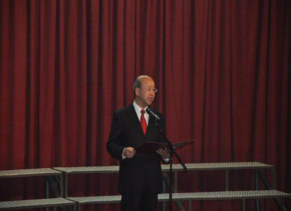 中國(guó)駐肯尼亞大使劉顯法在合唱比賽前發(fā)表講話,祝賀中國(guó)人民抗日戰(zhàn)爭(zhēng)暨反法西斯戰(zhàn)爭(zhēng)勝利70周年,并向全體中資員工致以節(jié)日的問(wèn)候,及對(duì)各中資公司參賽人員表示誠(chéng)摯的祝愿。隨后,合唱比賽在紅色經(jīng)典歌曲——《游擊隊(duì)之歌》中拉開(kāi)了序幕。