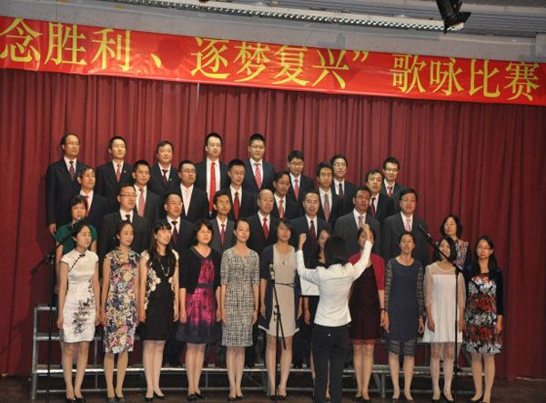 集團(tuán)資訊 9月24日,為慶祝中國(guó)人民抗日戰(zhàn)爭(zhēng)及暨法西斯戰(zhàn)爭(zhēng)勝利70周年,并歡慶中秋、國(guó)慶佳節(jié),江西省水利水電建設(shè)有限公司肯尼亞分公司參加了由中國(guó)駐肯尼亞大使館及肯中經(jīng)貿(mào)協(xié)會(huì)舉辦的第二屆合唱比賽。本屆比賽共有大使館、中航國(guó)際、中油石油、江西水建等十六家中資公司的幾百名人員參賽。